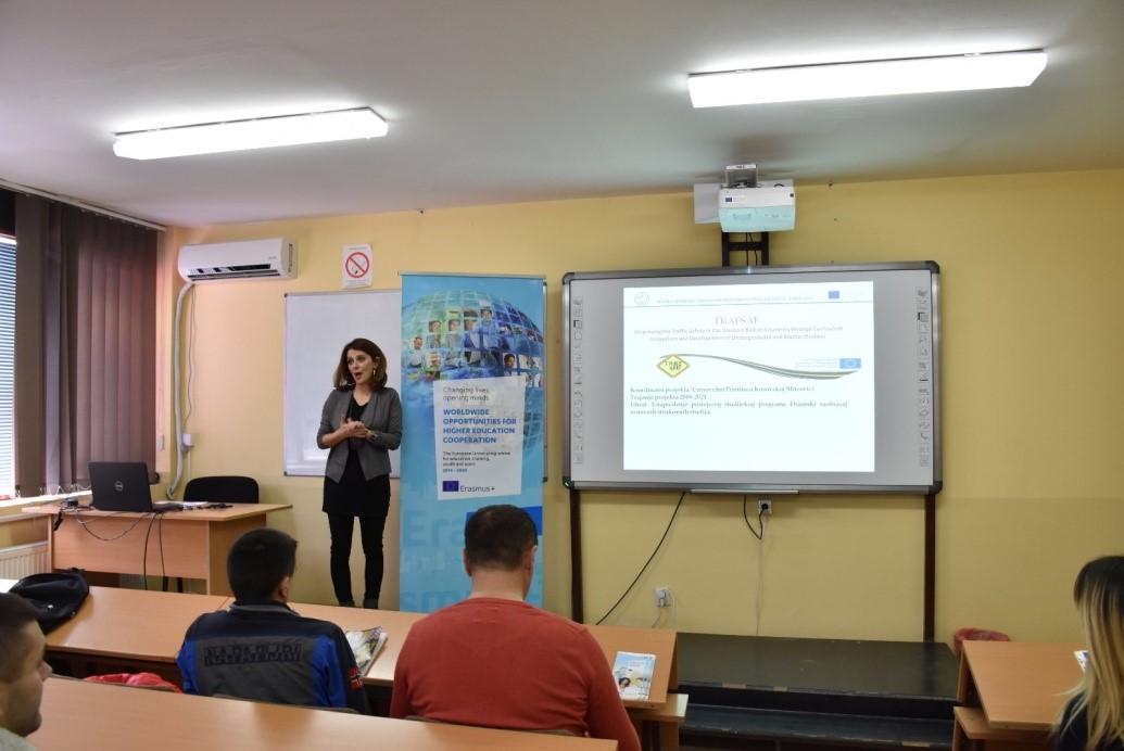 Уводни састанак (Kick-off meeting) Erasmus+ CBHE TRAFSAF пројекта Унапређење безбедности у саобраћају у земљама Западног Балкана кроз унапређење курикулума и развој основних и мастер студија- (Improving The Traffic Safety In The Western Balkan Countries Through Curriculum Innovation And Development Of Undergraduate And Master Studies) одржан је од 15.01. до 16.01.2019. на Факултету техничких наука у Косовској Митровици- Универзитет у Приштини са привременим седиштем у Косовској Митровици. Пројекат финансира Европска комисија у оквиру Ерасмус плус програма,а чини га конзорцијум од 16 партнера, четири из земаља чланица Европске уније и 12 из земаља Западног Балкана. Носилац пројекта је Универзитет у Приштини са привременим седиштем у Косовској Митровици. Као један од партнера, Висока техничка школа струковних студија Урошевац – Лепосавић је имала прилику да на уводном састанку представи свој досадашњи рад и активности као и будуће планове везане за унапређење наставе. На састанку су представљени радни пакети пројекта, носиоци радних пакета као и обавезе свих партнера у оквиру пројекта.